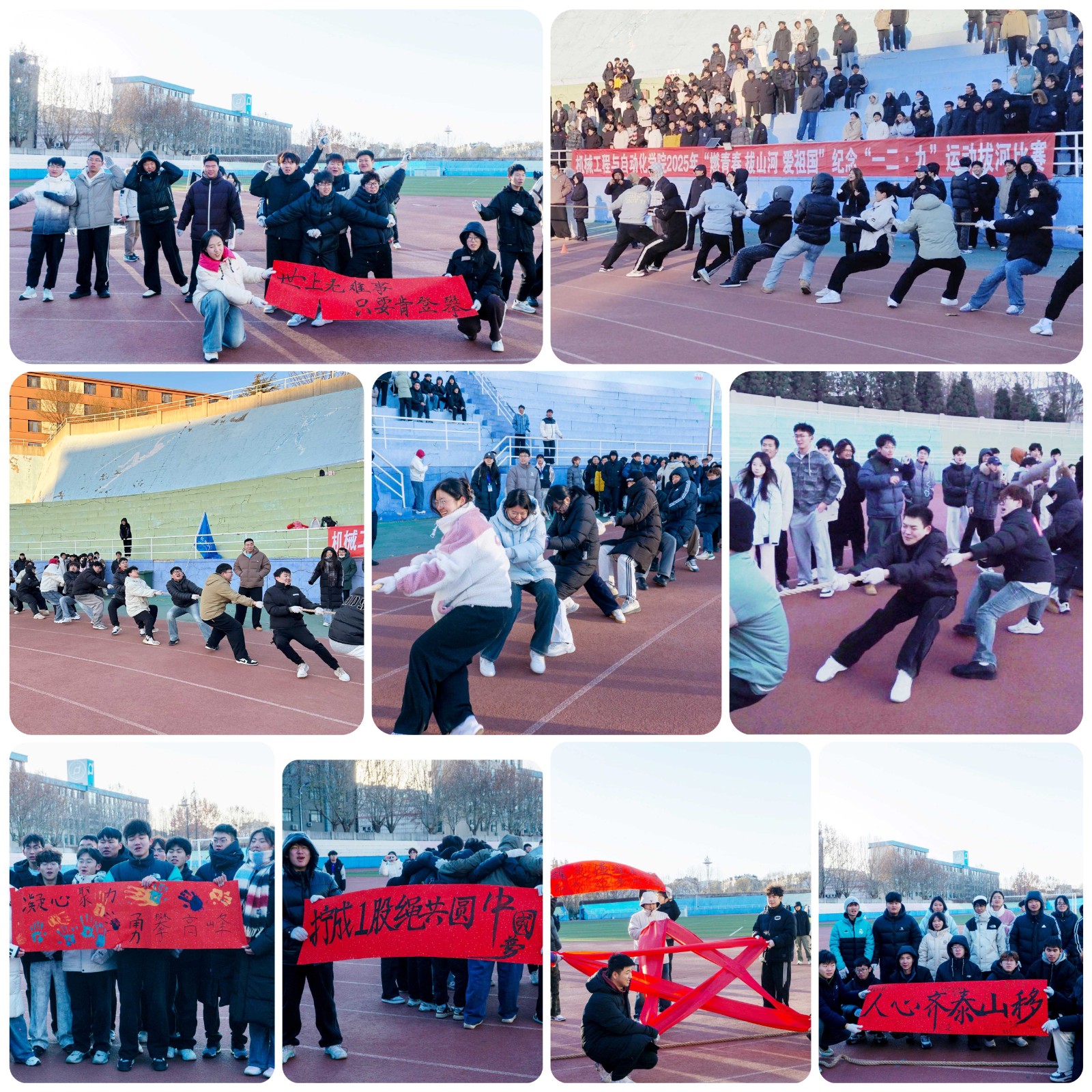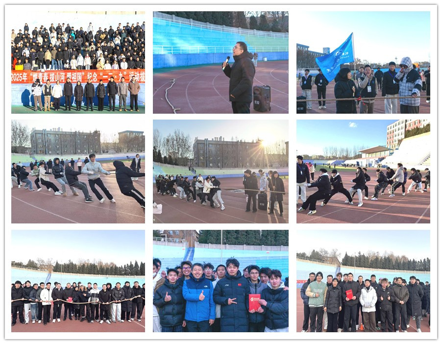 为传承“一二・九”运动爱国精神,凝聚青年学子奋进力量,12月3日,tyc86太阳集团欢迎您在体育场举办2025年“燃青春・拔山河・爱祖国”纪念“一二・九”运动拔河比赛,学院全体领导班子、员工工作办公室全体辅导员参加了本次活动。2025级本科生和研究生组成12支参赛队伍同台竞技,在力量角逐与风采展示中彰显青春担当。